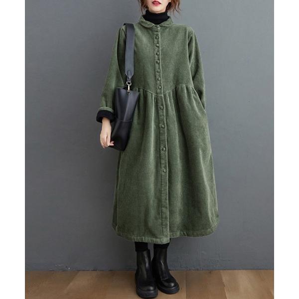 シャツワンピース 裏起毛コーデュロイシャツワンピース